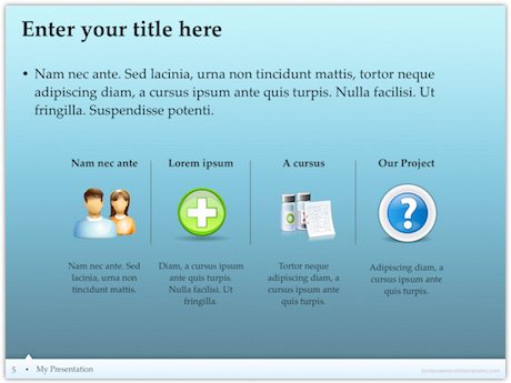 Once downloaded, simply open PowerPoint template like you normally would and modify the content. All our templates are compatible across different versions of PowerPoint (PowerPoint 2003, 2007, 2010 and 2013 versions). If you want to take it step further, I encourage you to use this fantastic powerpoint guide while working on your presentation content.