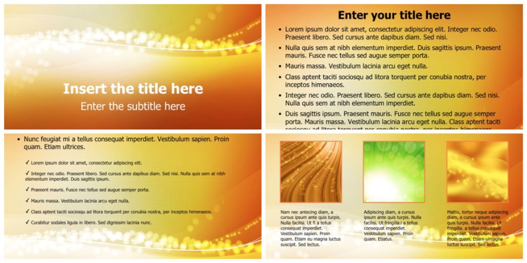 If you want to use it in a business presentation, a golden theme of this powerpoint design can represent a bright future in your business or reflect light of hope.
