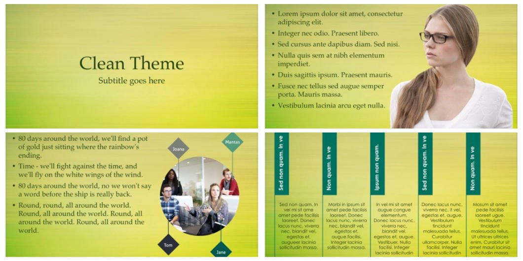 Another amazing light green Powerpoint template, which is great for simple and clean powerpoint theme.