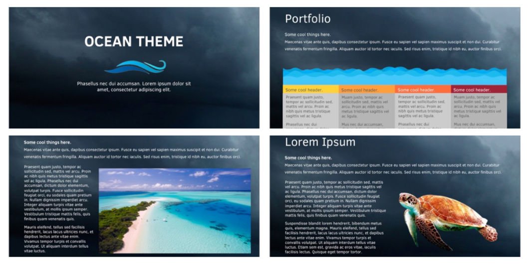 Ocean PowerPoint template may be used for Geography or Nature presentations. With this theme you can simplify your presentation and perfectly explain a complex data;