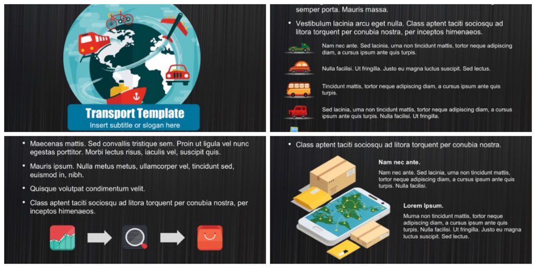 The transport powerpoint template is designed for all transport and transportation presentations. It will allow you to produce a top notch presentation quickly about transportation or worldwide shipping.