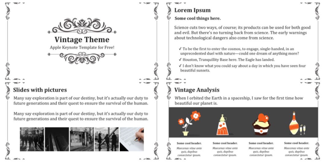 With a bold combination of white color and vintage elegancy, this free template for PowerPoint is perfect to keep the attention of your audience.