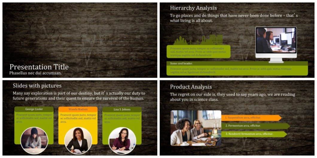 This is another impressive wooden wall theme, which is great for basically any PowerPoint theme. Template may be useful in presentations where you need to deliver strong and impactful message.