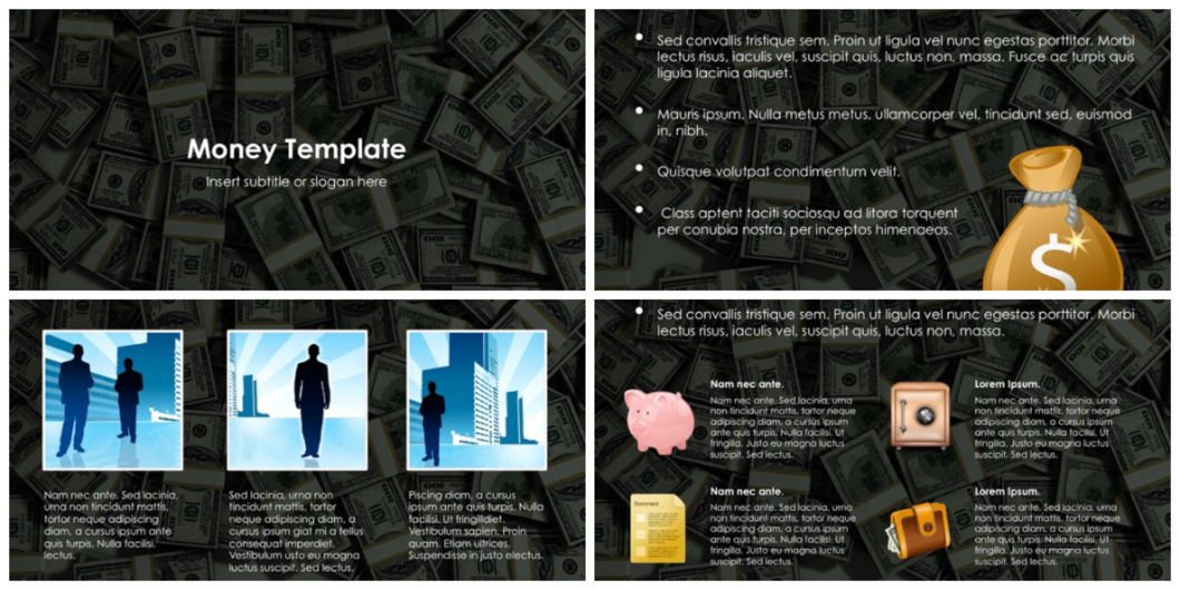 You can download it for free from our website. The template contains a series of bills in the background that make it just ideal for any money related or financial presentations.