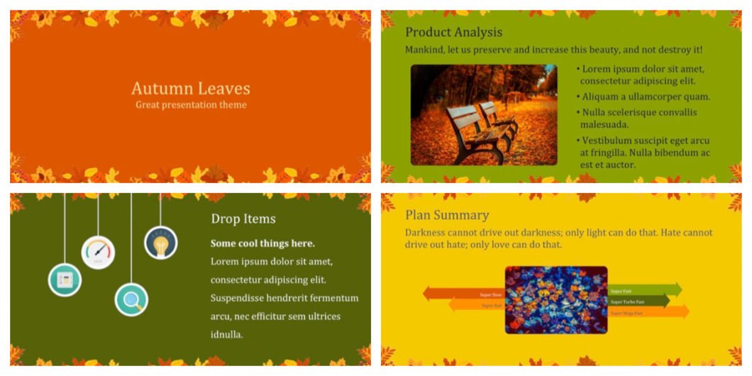 This professional PowerPoint presentation with autumn leaves uses simple and well-defined visuals, so it won’t confuse your audience!