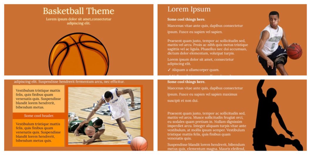 The modern design of this template can be used for presentations on basketball training and strategy. You can replace the content placeholders with your data and you are set to go.