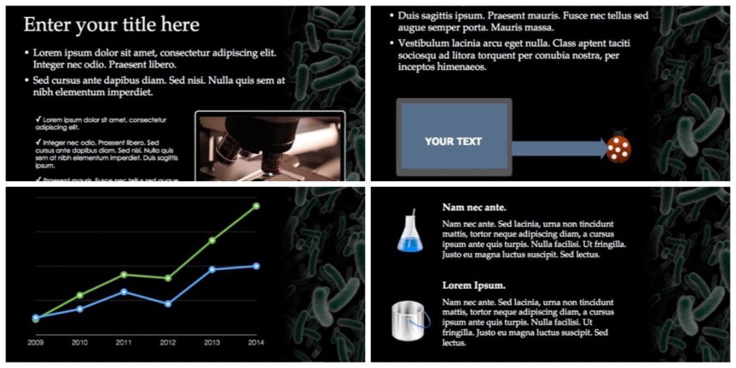 Anyone in need for the demonstration of micro-organisms, bacteria or microbiology will find this template very useful.