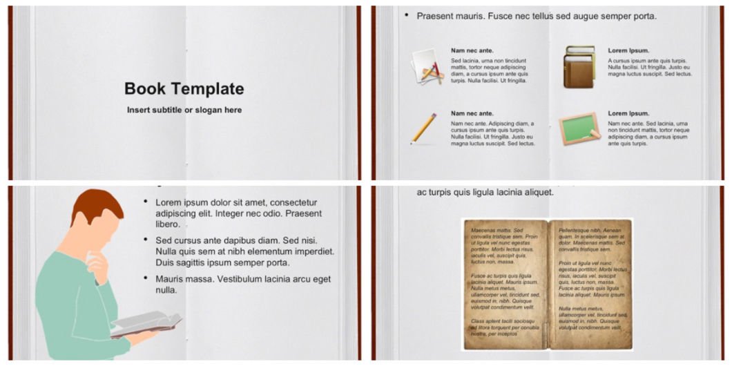 Book PowerPoint Template is a great template for PowerPoint PPT educators and teachers that can use it to create and perform stunning PowerPoint templates with chapters, sections or pages.