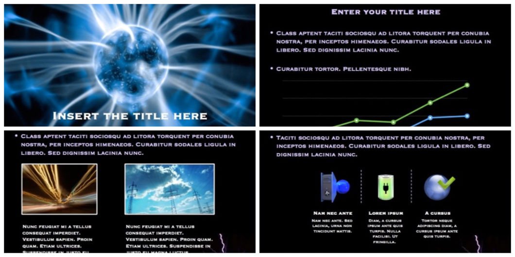 Electricity PowerPoint template with a black background was designed for presentations related to power generation and electrical engineering, also for dams of electric grid stations or construction projects or other engineer’s related presentations in PowerPoint.
