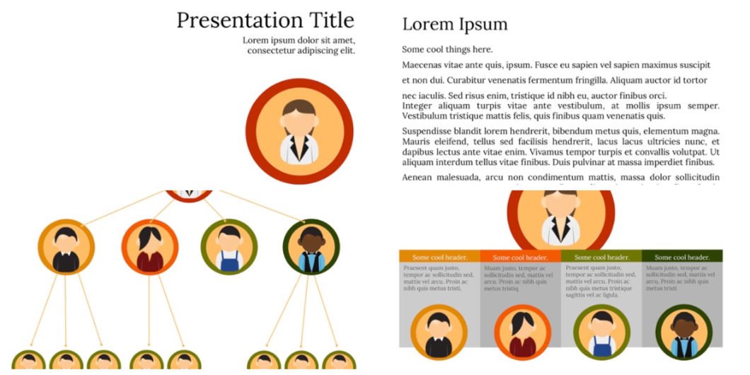 This is another impressive PowerPoint Org Chart Template, which is great for showing the structure of an organization or a company. A company’s organizational chart usually illustrates relationships between people within an organization, so simply use this org chart theme to demonstrate the relationships and ranks of your company.