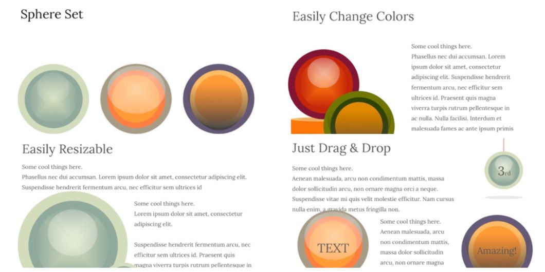 This PPT has a set of three sphere figures that were created in PowerPoint, which means, that these high-quality 3D objects can be easily customized. Change colors, resize them or do whatever you want.