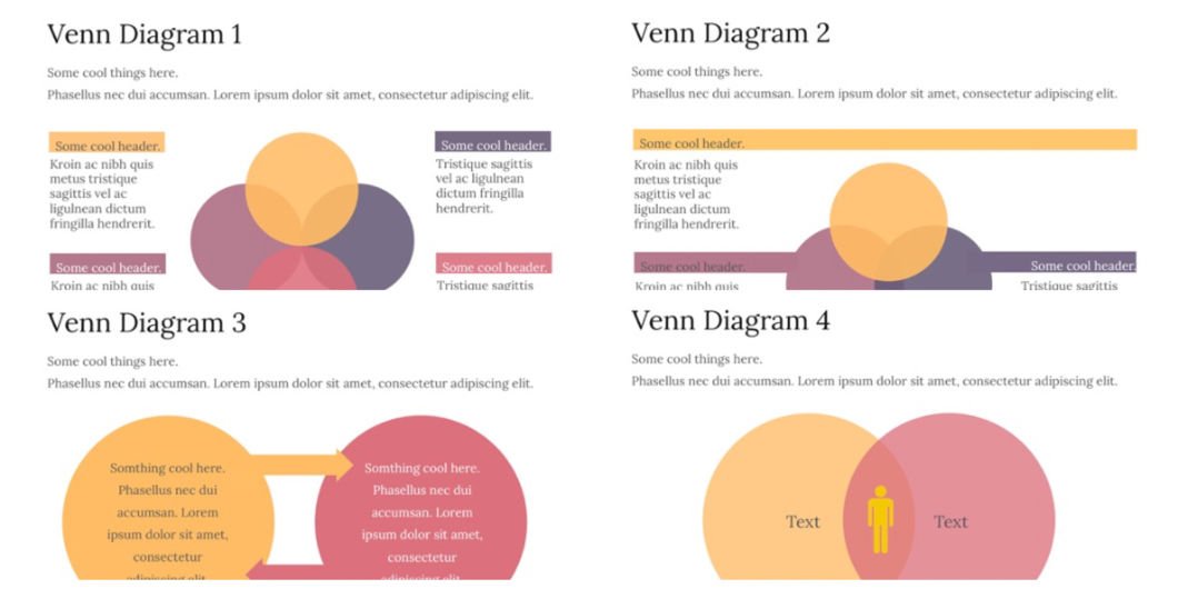 This PowerPoint item is intended to be used in your template when you need a PPT slide of a Venndiagram. This primary diagram item in PowerPoint has many vector elements so you can create your own Venn diagram.