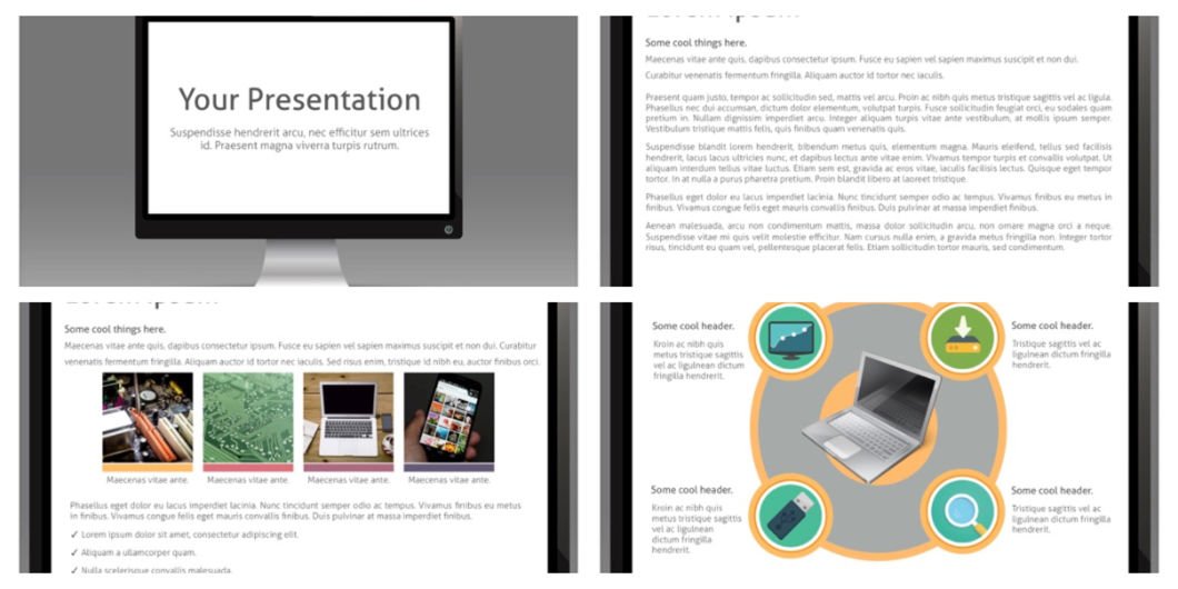 We suggest this slideshow for internet or technology PPT themes, for simple and clear presentations. It includes 8 unique slides.