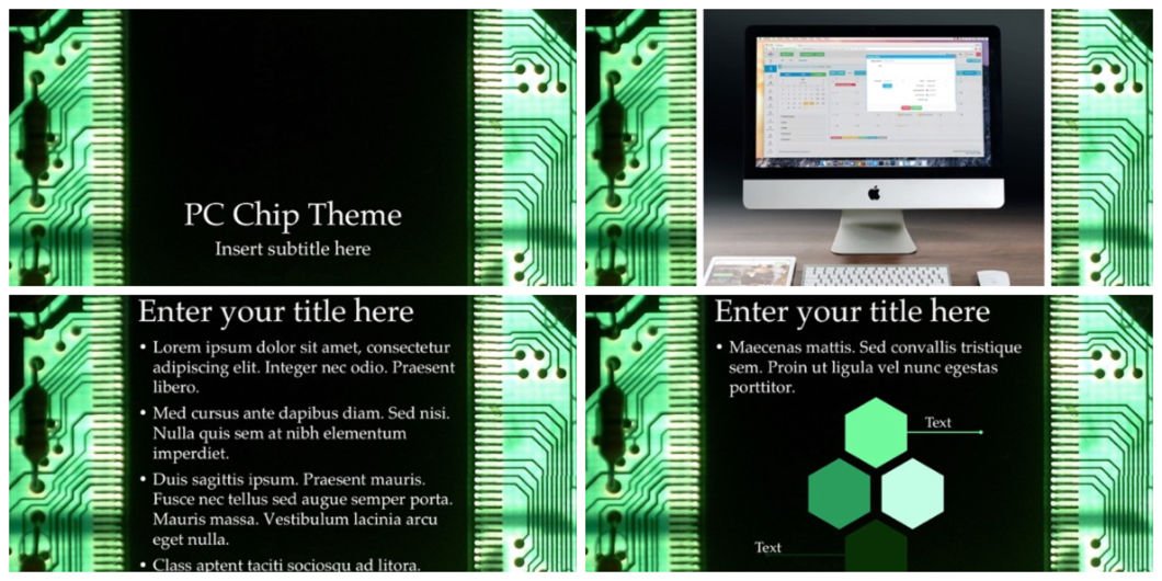 This Pc Chip PowerPoint template is with electrical circuit in background and it can be used in presentations of electrical engineers as well as professionals of electronics.